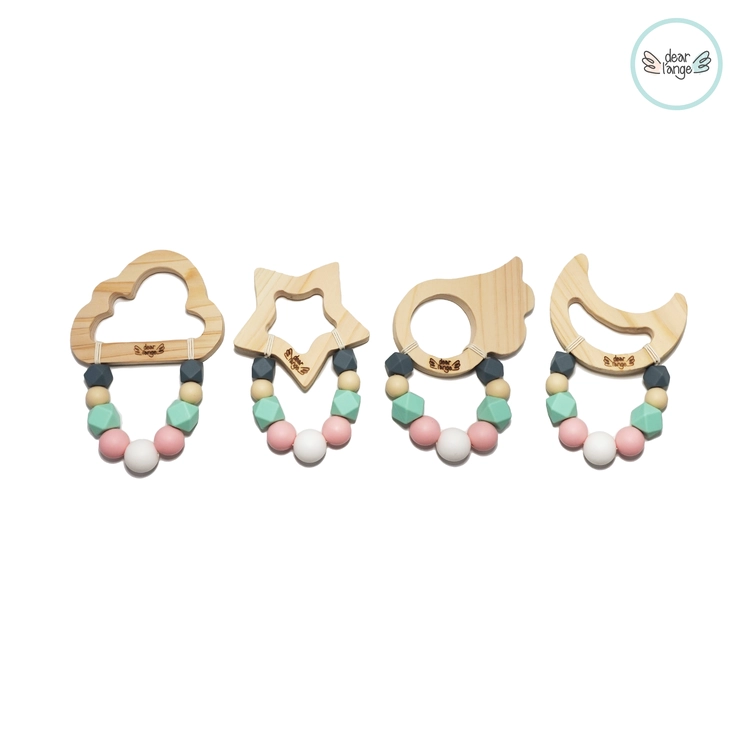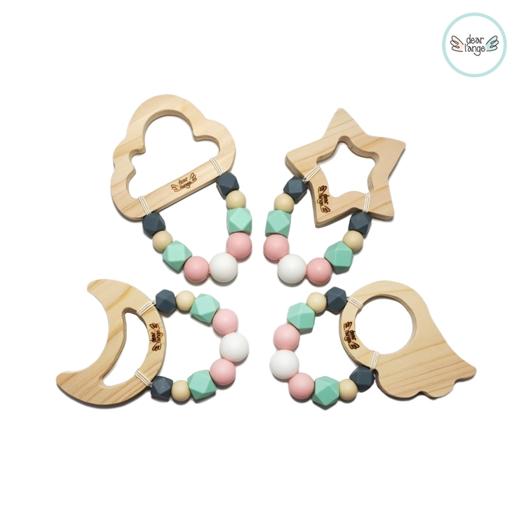 [디어랑쥬] 친환경 편백나무 오감만족 우드 원목 치발기 (솜사탕 민트)