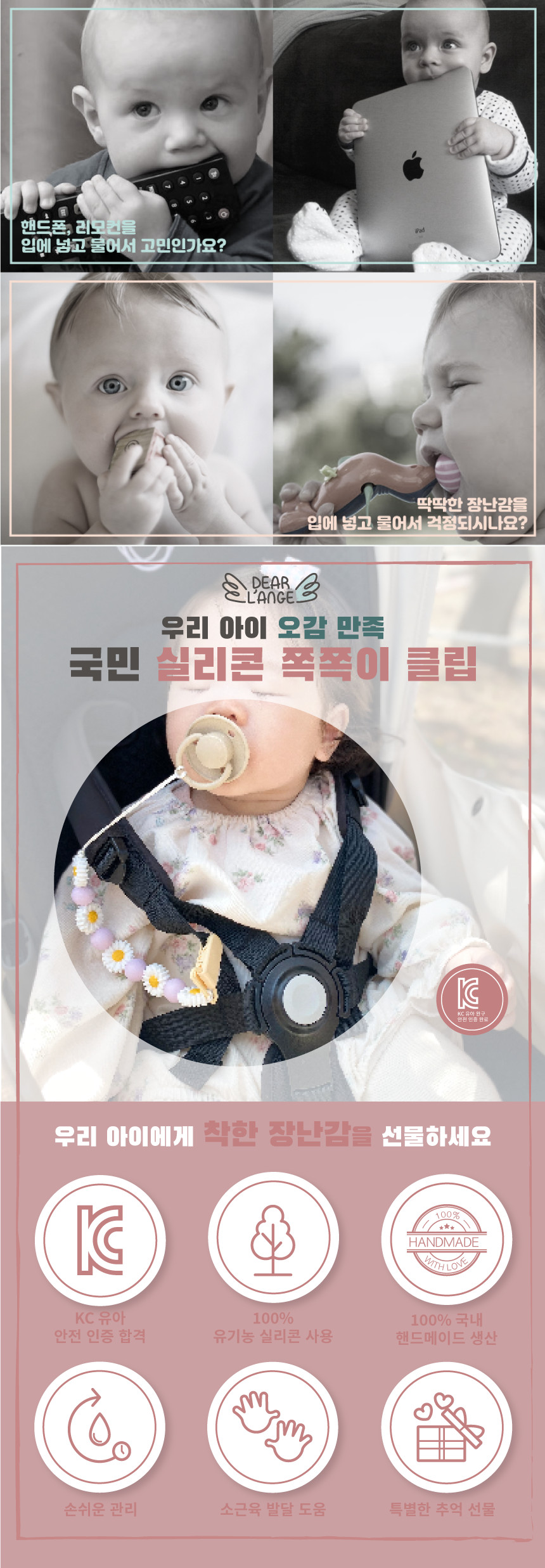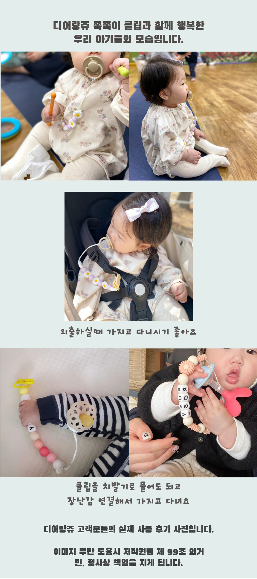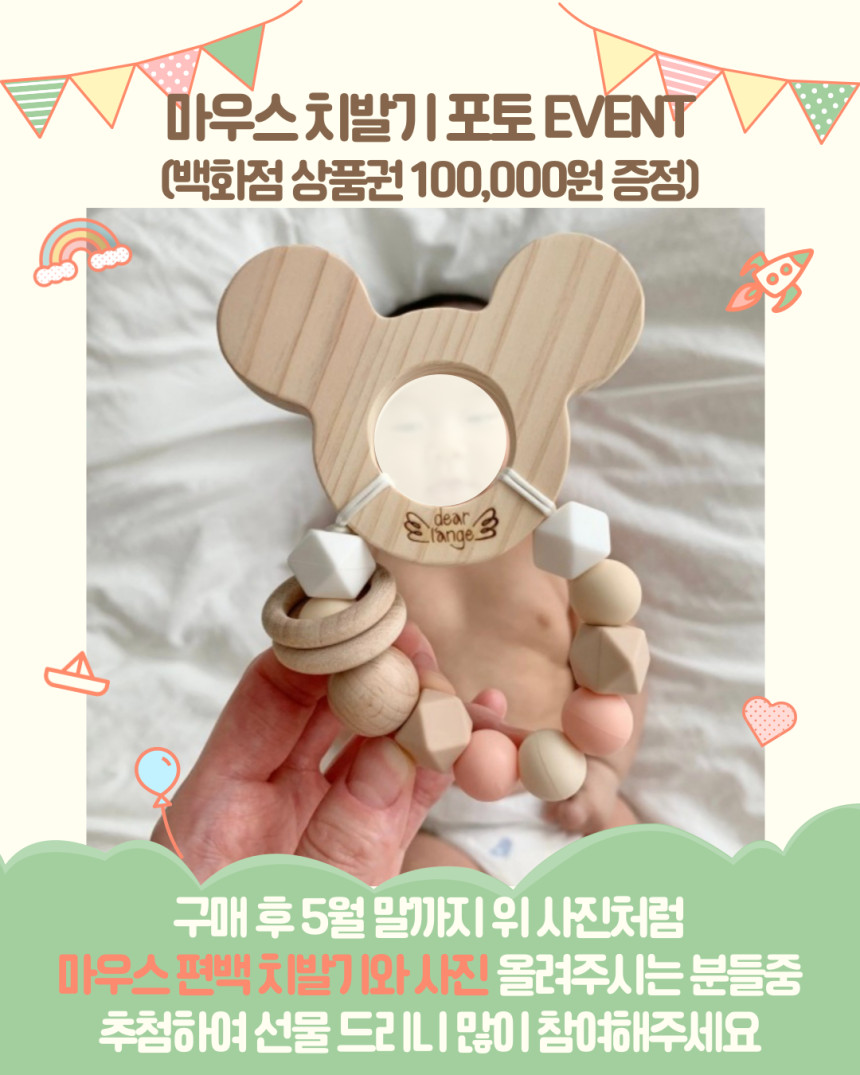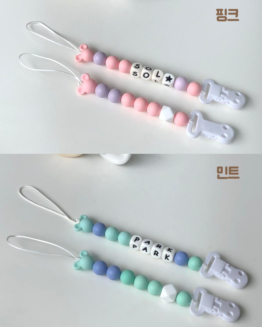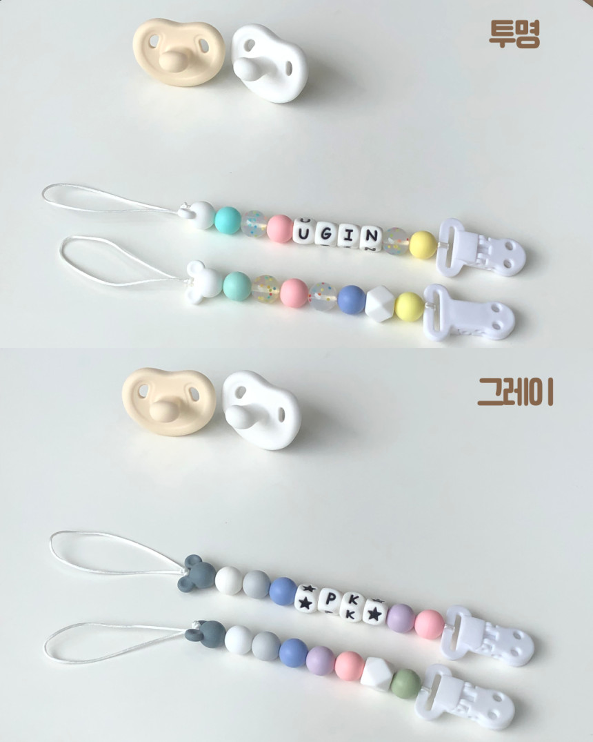 디어랑쥬 마우스 실리콘 이니셜 쪽쪽이 스트랩 클립 홀더 UV 열탕 소독